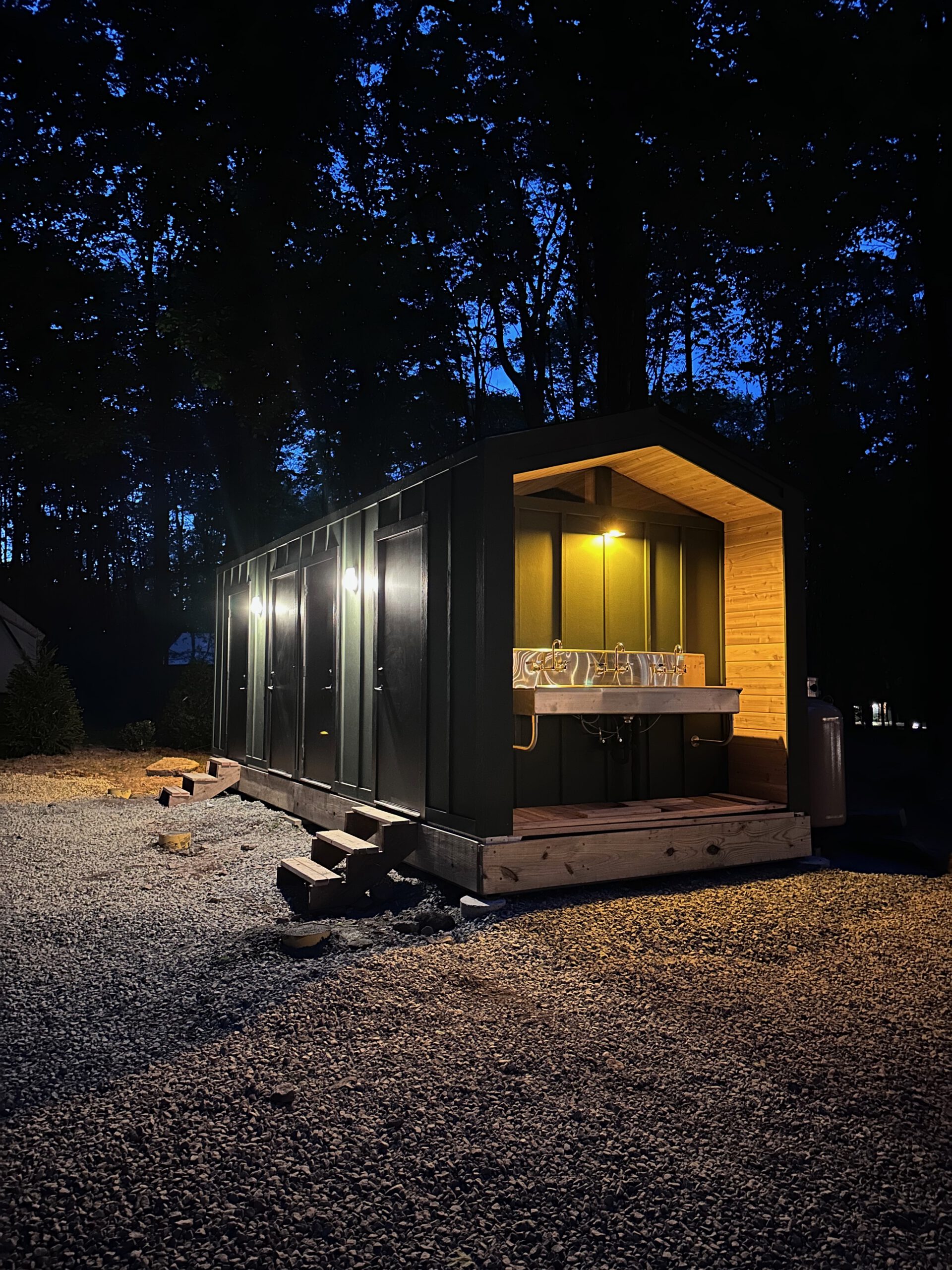The Pine Bathhouse is a hospitality-ready restroom and shower facility designed to add modern amenities without the cost, delays, or permanence of traditional construction. Built on a steel chassis and delivered fully finished, each unit arrives ready to place and connect with minimal site work required.