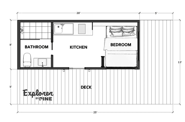 At 8′ x 20′ the Explorer is small enough to remain affordable, but has high ceilings with a loft bed option that makes it feel roomy and comfortable
